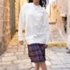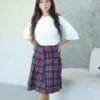עשויה מאריג סקוטי (משובץ), בעיצוב ייחודי מלא בסטייל.