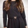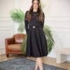 שמלת מידי בגזרה מחמיאה ונשית, עם חגורת מותן עדינה שמדגישה את הסילואט.